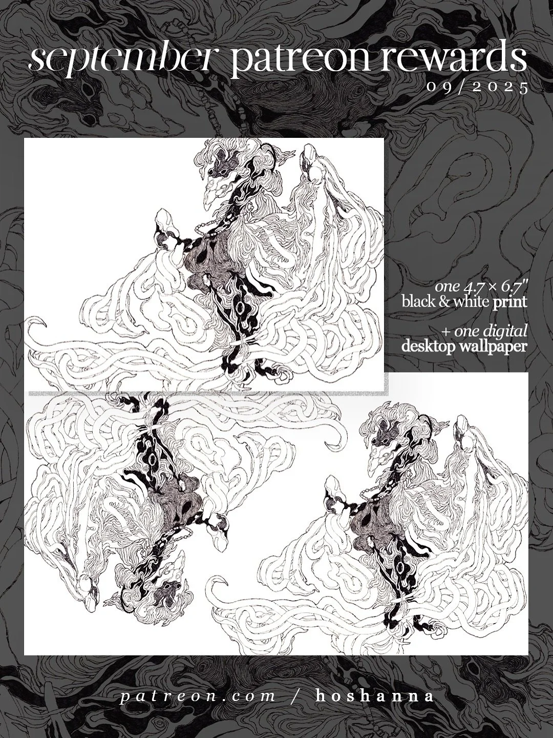 Pour voir plus de mon travail et de mes projets au quotidien, vous pouvez suivre mon compte instagram (@hoshanna) où je suis active & sur lequel je poste régulièrement.