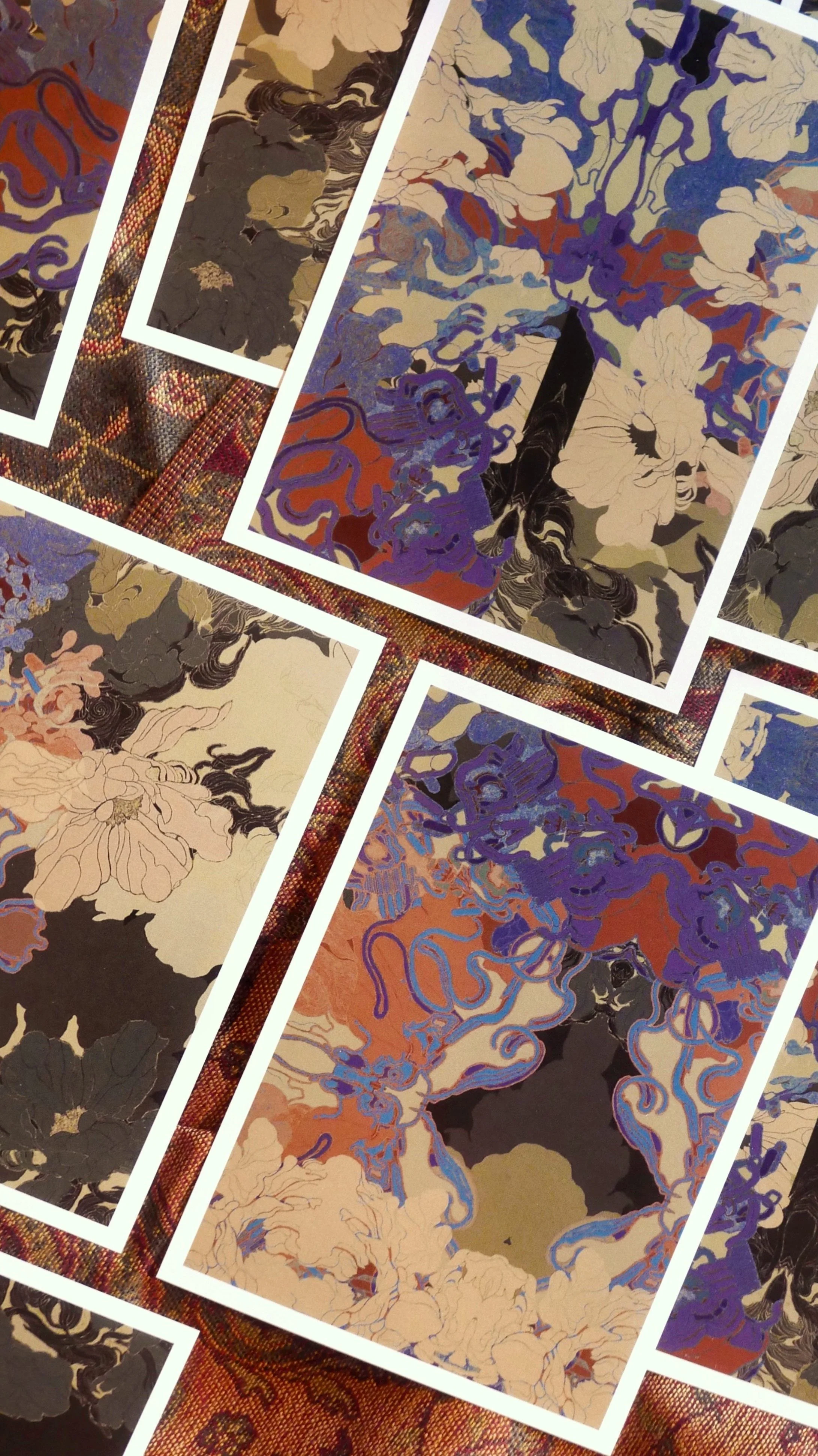 Je dessine des plantes, des créatures fantastiques & des motifs parfois abstraits mais toujours inspirés de la nature et des végétaux. Mes principales sources d'inspiration sont la botanique, les cultures traditionnelles de différents pays asiatiques (Japon, Chine) et des courants picturaux comme l'Art nouveau ou le mouvement nabi.